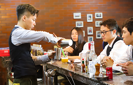 实景模拟酒吧营业、点单、制作、盘点、备货、成控等